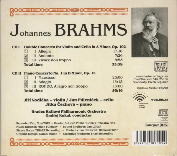 | Wykonawca | Johannes Brahms | Jitka Čechová | Ondřej Kukal | Filharmonie Hradec Králové | Jiří Vodička | Jan Páleníček |