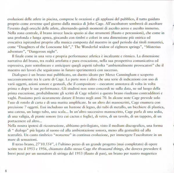 | Wykonawca | John Cage | Roberto Fabbriciani | Jonathan Faralli |
