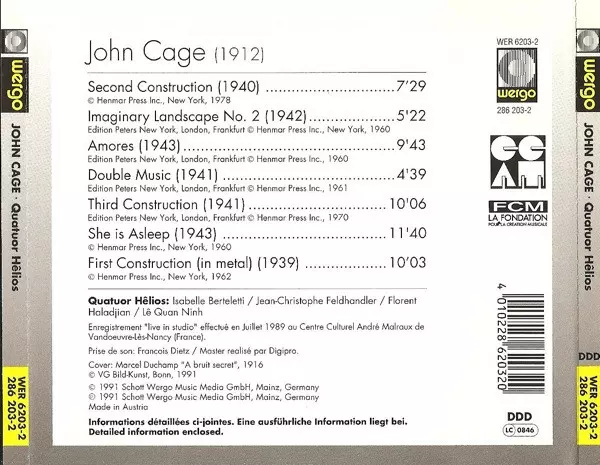 Wykonawca | John Cage | Quatuor Hêlios |