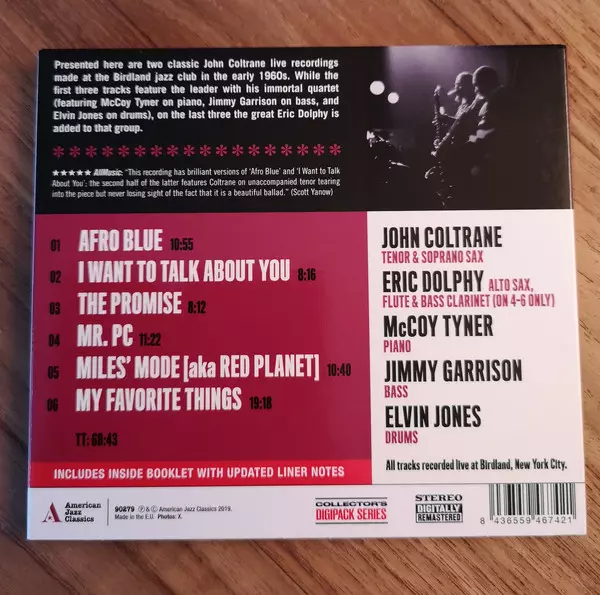 Featuring two classic live recordings of John Coltrane from the Birdland Jazz Club in the early 1960s. While the first three tracks are accompanied by John Coltrane with his immortal quartet (McCoyTyner on piano, Jimmy Garrison on bass and Elvin Jones on drums), the great Eric Dolphy joins the group on the last three tracks.