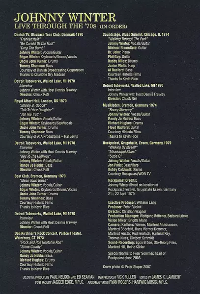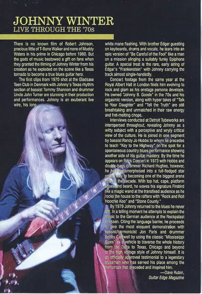 Johnny Winter: Live Through The '70s Wersja na DVD w standardowe wydanie. Ta konkretna edycja została wydana w USA w wydawnictwie MVD Visual dnia 11. listopada 2008. Album sięga do gatunku Rock i Blues-Rock.