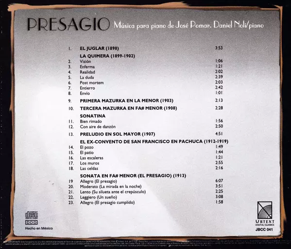 | Tytuł | Presagio - Musica Para Piano de Jose Pomar |