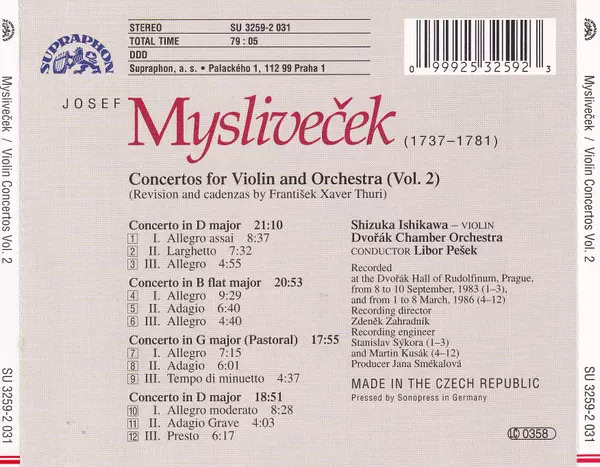 | Wykonawca | Josef Mysliveček | Libor Pešek | Shizuka Ishikawa | Dvořák Chamber Orchestra |