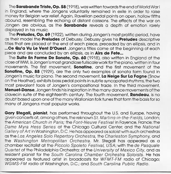 | Wykonawca | Joseph Jongen | Gary Stegall |