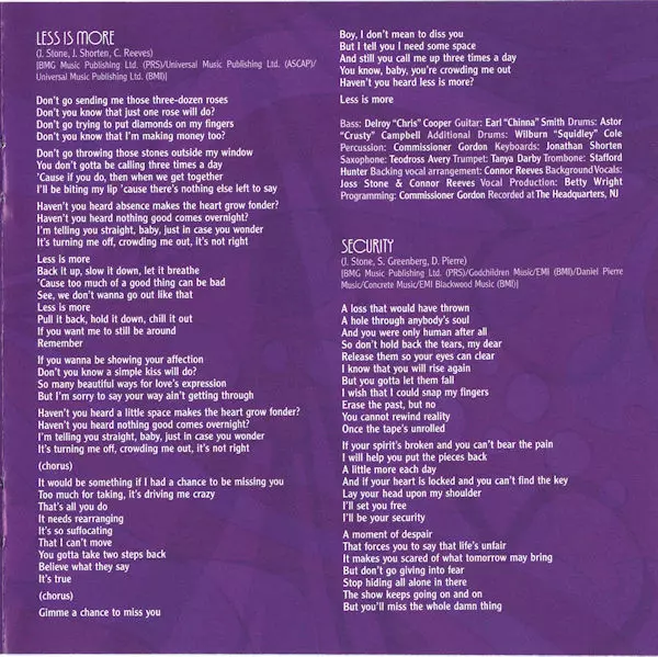 Backing Vocals Betty Wright, Bombshell (7), Joss Stone | Baritone Saxophone, Tenor Saxophone, Trombone, Trumpet Tom Malone | Bass, Keyboards Mike Mangini | Drums Jonathan Joseph (2) | Guitar Al Nilo | Piano, Organ [B3] Raymond Angry | Programmed By Mike Mangini, Steve Greenwell | Written-By Betty Wright, Desmond Child, Eugene Record, Joss Stone, Mike Mangini, Sonny Sanders, Steve Greenberg