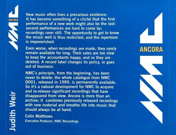 | Wykonawca | Judith Weir | Siân Edwards | The English National Opera Orchestra | The English National Opera Chorus | Anne-Marie Owens | Nerys Jones | Christopher Ventris | Nicholas Folwell |