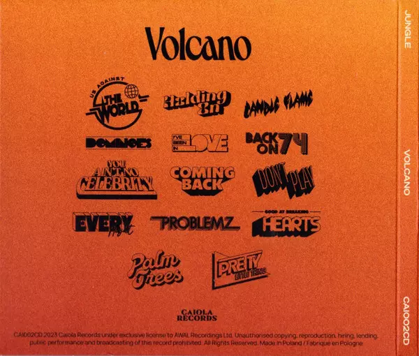 Jungle: Volcano Wersja na CD w standardowe wydanie. Ta konkretna edycja została wydana w Europa w wydawnictwie Caiola Records dnia 11. sierpnia 2023. Album sięga do gatunku Muzyka elektroniczna, Funk / Soul, Neo-Soul, Nu-Disco, Pop Soul, Synth Funk i Psychedelic Soul.