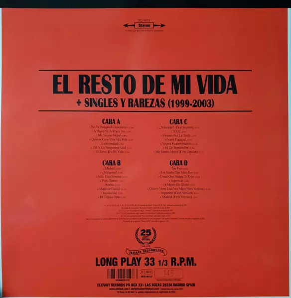 | Tytuł | El Resto De Mi Vida + Singles Y Rarezas (1999-2003) LTD | NUM |