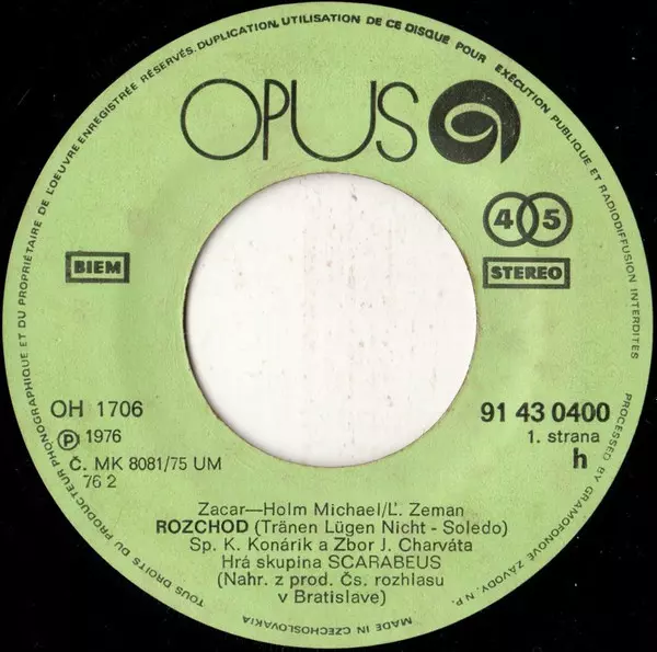 Backing Band [Hrá Skupina] Scarabeus (2) | Choir [Zbor] Zbor J. Charváta | Lyrics By [Slovak] Ľuboš Zeman | Vocals [Sp.] Karol Konárik | Written-By Michael Holm, Zacar | |||