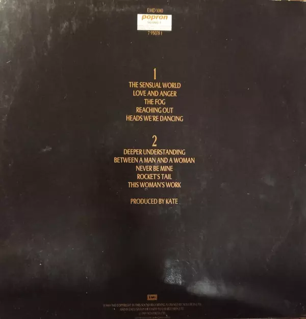 The Sensual World is an album Kate Bush, released in 1989. It was her eighth studio album. The album was commercially successful, reaching number three in the UK Albums Chart. The album spawned two hit singles, "The Sensual World" and "Love and Anger". The album was nominated for a Grammy Award for Best Alternative Music Album.