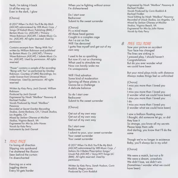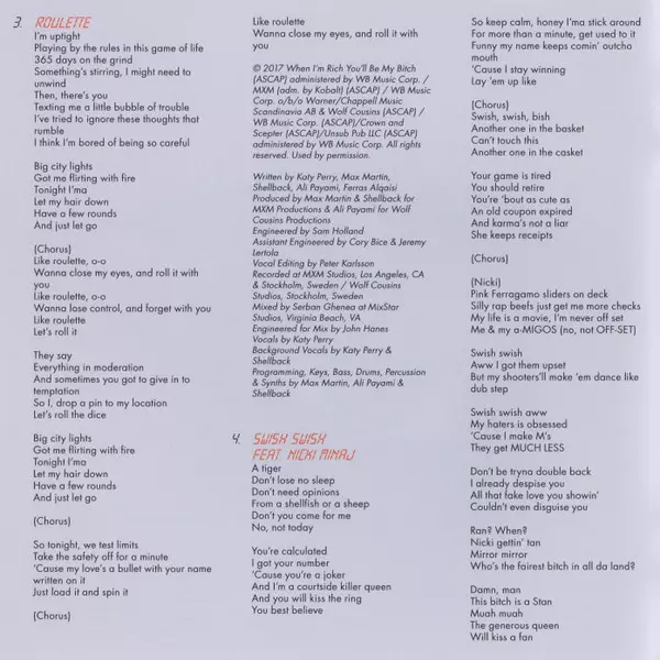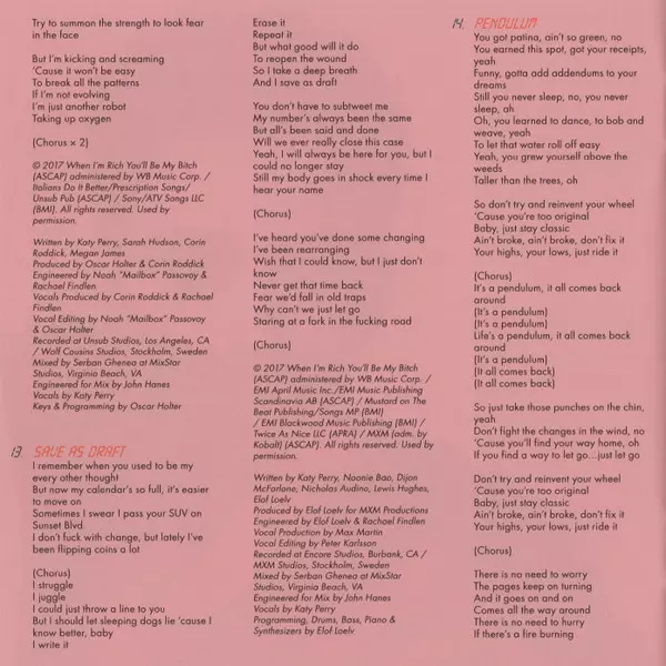 Backing Vocals Shellback (2) | Edited By [Vocals] Peter Carlsson (3) | Featuring Migos | Producer Max Martin, Oscar Holter, Shellback (2) | Programmed By, Keyboards Oscar Holter, Shellback (2) | Written-By Ferras Alqaisi, Katy Perry, Kiari Cephus, Kirsnick Ball, Max Martin, Oscar Holter, Quavious Marshall, Shellback (2)