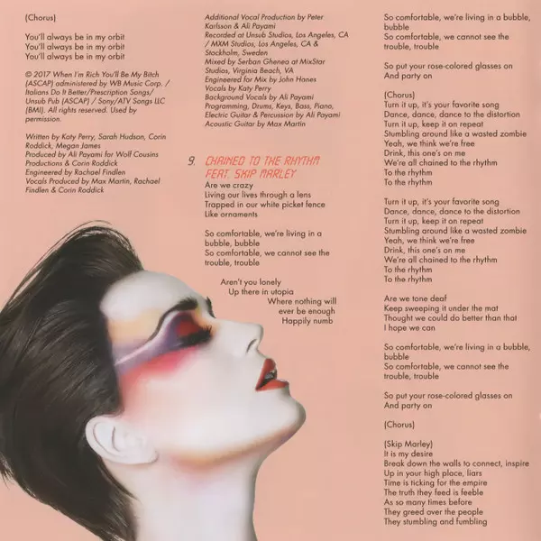 Backing Vocals Katy Perry, Max Martin, Sia, Skip Marley | Drums, Bass, Synth, Piano, Sounds [Epic Claps] Ali Payami | Edited By [Vocals] Peter Carlsson (3) | Featuring Skip Marley | Percussion Ali Payami, Peter Carlsson (3) | Producer, Programmed By Ali Payami, Max Martin | Sounds [Prophet 6 & Solina] Max Martin | Written-By Ali Payami, Katy Perry, Max Martin, Sia Furler, Skip Marley