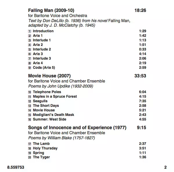 Falling Man For Baritone Voice And Orchestra (2009-10) | 18:26 min | |