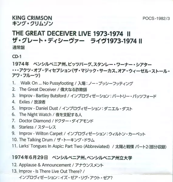 | Tytuł | The Great Deceiver 2: Live 1973-1974 |