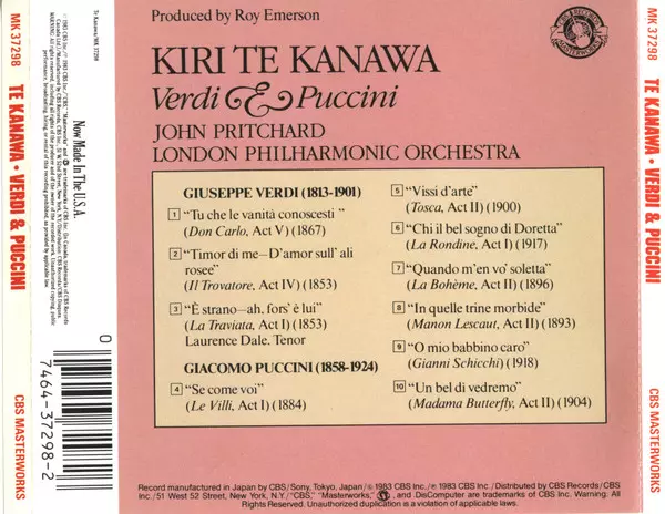 | Wykonawca | Giuseppe Verdi | Giacomo Puccini | London Philharmonic Orchestra | Kiri Te Kanawa | John Pritchard |