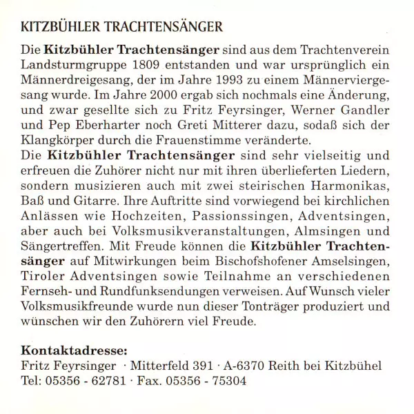 Wykonawca | Kitzbühler Trachtensänger | Kitzbühler Feischtagmusig | Wüde Koasa Blas'n |