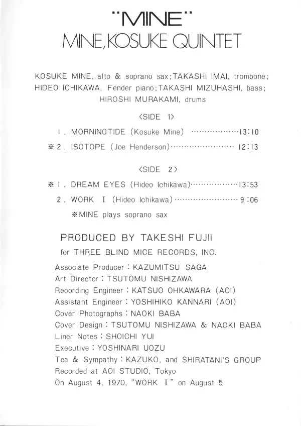 Wykonawca | Kosuke Mine Quintet |