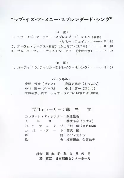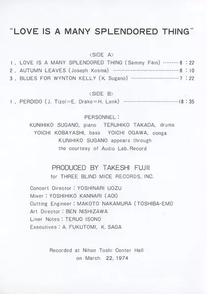 LP Kunihiko Sugano Trio: Love Is A Many Splendored Thing LTD