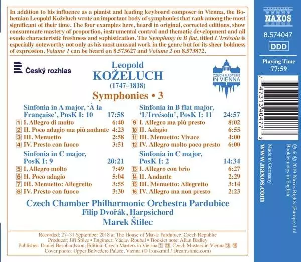| Wykonawca | Leopold Koželuh | Marek Štilec | Czech Chamber Philharmonic Orchestra Pardubice |