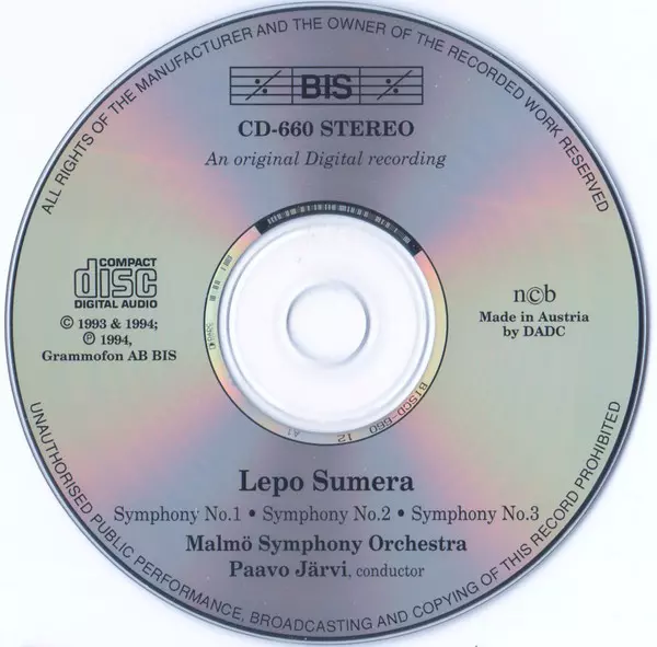 | Wykonawca | Paavo Järvi | Malmö Symphony Orchestra | Lepo Sumera |