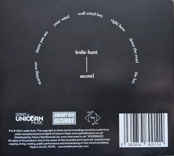 Leslie Hunt: Ascend Wersja na CD w standardowe wydanie. Ta konkretna edycja została wydana w Europa, Wielka Brytania i USA w wydawnictwie Spirit Of Unicorn Music dnia 2. lipca 2021. Album sięga do gatunku Rock i Pop.