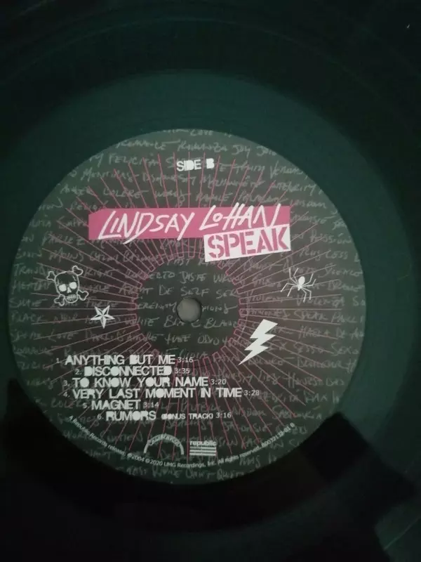 Lindsay Lohan: Speak Wersja na winylu LP w standardowe wydanie. Ta konkretna edycja została wydana w USA w wydawnictwie Casablanca we współpracy z Republic Records i UMe dnia 6. listopada 2020. Album sięga do gatunku Rock, Pop i Pop Rock.
