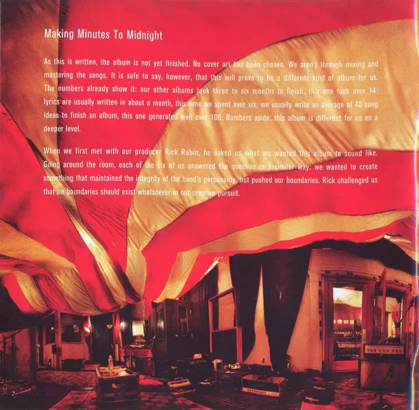 "Włożyliśmy w ten album więcej niż we wszystkie poprzednie" - wyjaśnia basista Dave "Phoenix" Farrell. Tym razem zespół wycofał się do studia na ponad 14 miesięcy, wybierając materiał z ponad 100 demówek LINKIN PARK nagranych w ramach przygotowań do albumu. Mike Shinoda opisuje Minutes to Midnight jako "przełom w ewolucji brzmienia zespołu. Prób...