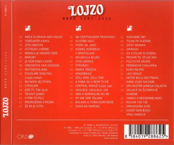 Lojzo: Opus 1985 - 1996 Wersja na 3CD w zremasterowane wydanie. Ta konkretna edycja została wydana w Słowacja w wydawnictwie Opus dnia 7. listopada 2016. Album sięga do gatunku Pop, Folk, World, & Country, Folk, Parody i Klasyka Czechosłowacka.