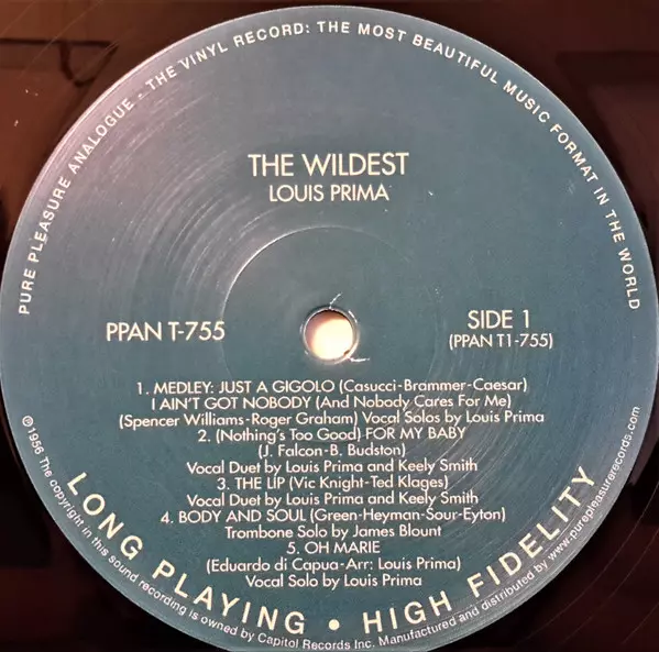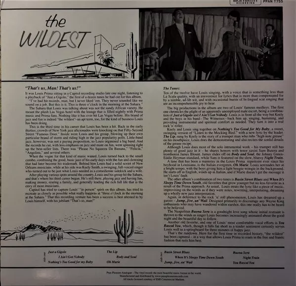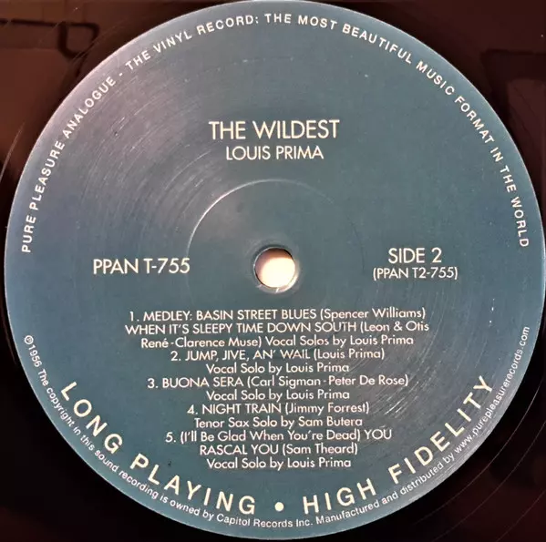 Louis Prima: The Wildest! LTD Wersja na winylu LP w ograniczone zremasterowane wydanie. Ta konkretna edycja została wydana w WIELKA BRYTANIA w wydawnictwie Pure Pleasure Records dnia 6. grudnia 2013.