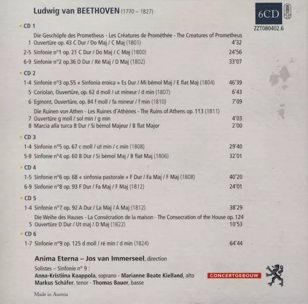 Ludwig van Beethoven: Symphonies / Ouvertures Wersja na 6CD/Zestaw pudełkowy w standardowe wydanie. Ta konkretna edycja została wydana w Europa w wydawnictwie Zig Zag Territoires roku 2008. Album sięga do gatunku Muzyka klasyczna i Romantyzm.