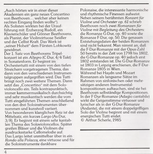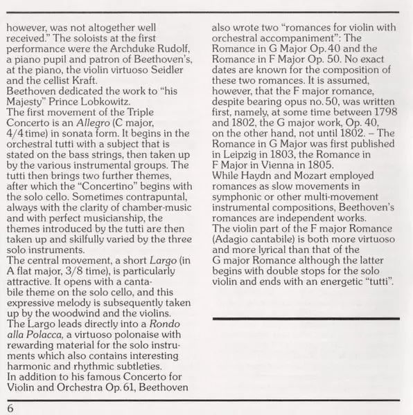 | Tytuł | Tripelkonzert • Triple Concerto / Violinromanzen • Violin Romances Nos. 1 & 2 |