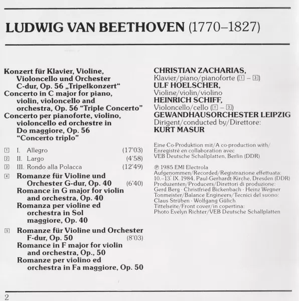 | Wykonawca | Ludwig van Beethoven | Gewandhausorchester Leipzig | Kurt Masur | Christian Zacharias | Ulf Hoelscher | Heinrich Schiff |