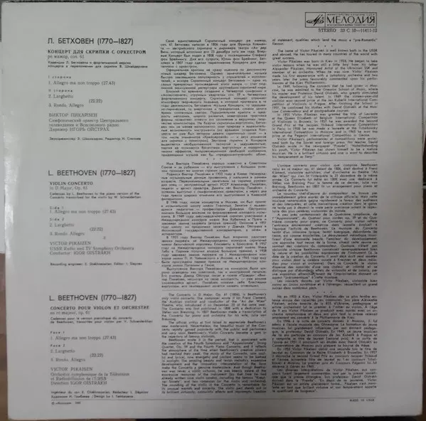 | Wykonawca | Ludwig van Beethoven | Igor Oistrach | Viktor Pikaizen |