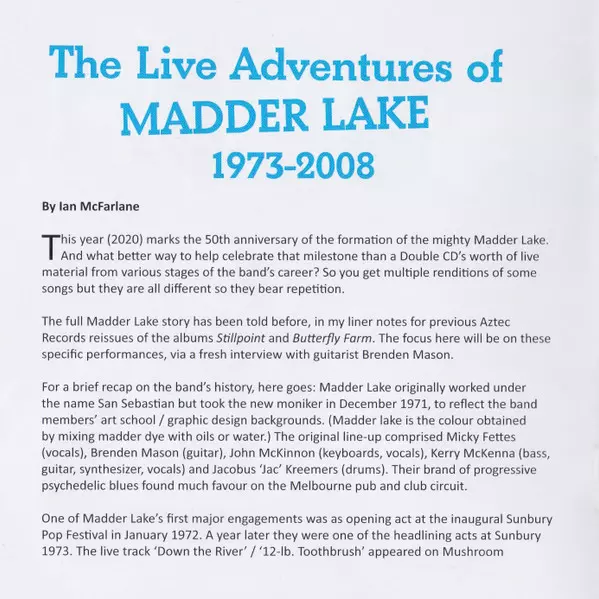 | Tytuł | The Live Adventures Of Madder Lake 1973-2008 |