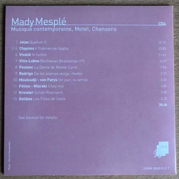 Mady Mesplé: Edition Du 80e Anniversaire Wersja na 4CD/Zestaw pudełkowy w standardowe wydanie. Ta konkretna edycja została wydana w Francja w wydawnictwie EMI Classics roku 2011. Album sięga do gatunku Pop, Muzyka klasyczna, Opera, Contemporary classical, Chanson i Operetta.