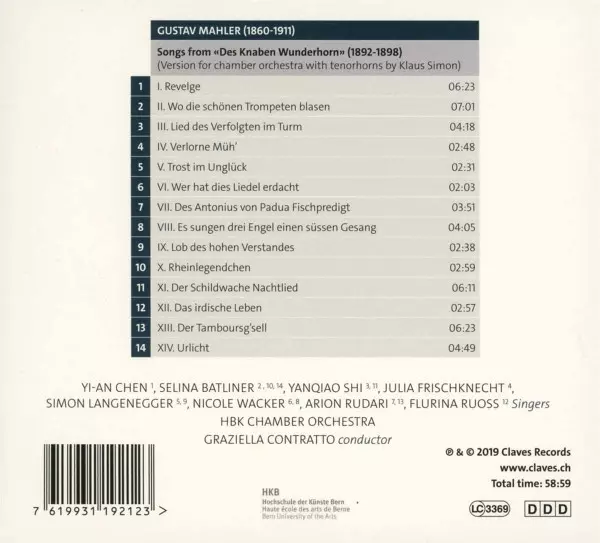 | Wykonawca | Gustav Mahler | Graziella Contratto | Selina Batliner | Yi-An Chen | Julia Frischknecht | Simon Langenegger | Arion Rudari | Flurina Ruoss | Yanqiao Shi | Nicole Wacker | HKB Chamber Orchestra |