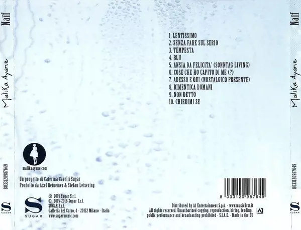 Malika Ayane: Naïf Wersja na CD w standardowe wydanie. Ta konkretna edycja została wydana w Europa w wydawnictwie Sugar (2) dnia 6. stycznia 2017. Album można sklasyfikować jako gatunek Pop. Jewel Case.