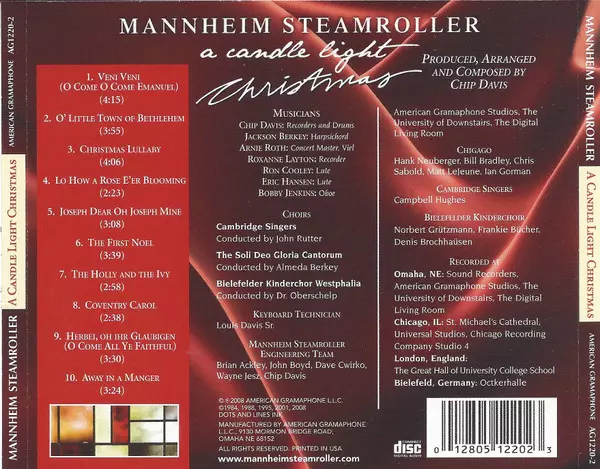 Mannheim Steamroller is an American neoclassical new-age music group founded by composer and record producer Chip Davis in 1974. The group is known for its modern recordings of Christmas music and has become one of the most popular acts in the holiday music genre. Their signature s...