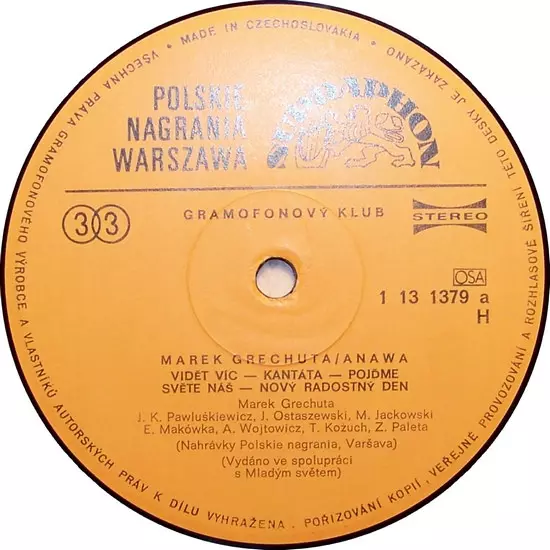| Wydawca | Supraphon | Polskie Nagrania Muza | Gramofonový Klub |