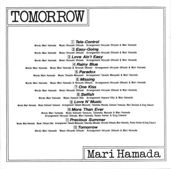 Mari Hamada: Tomorrow Wersja na CD w zremasterowane wydanie. Ta konkretna edycja została wydana w Japonia w wydawnictwie Universal Music dnia 15. stycznia 2014. Album sięga do gatunku Rock, Pop, Pop Rock, J-Rock i AOR. Shm CD.