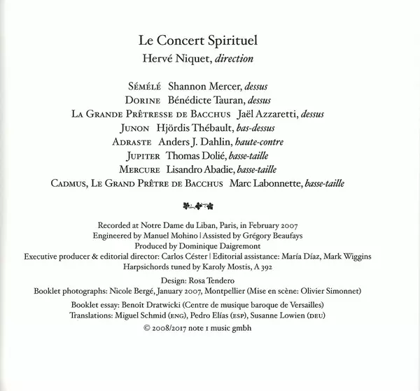 Hervé Niquet: Sémélé (Tragédie Lyrique, Paris, 1709) Wersja na 2CD w standardowe wydanie. Ta konkretna edycja została wydana w Europa w wydawnictwie Glossa dnia 3. listopada 2017. Album sięga do gatunku Muzyka klasyczna, Muzyka barokowa i Opera.