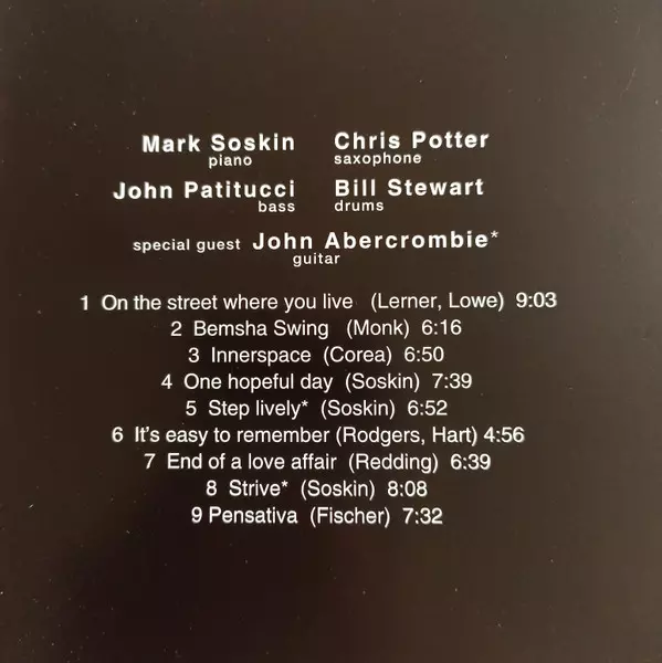 | Wykonawca | John Abercrombie | John Patitucci | Chris Potter | Bill Stewart | Mark Soskin |