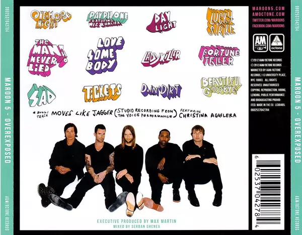 The American band Maroon 5 is one of the most successful groups of the last decade. The band has sold more than seventeen million albums and has been awarded gold or platinum status in thirty-five countries.The new fourth studio album by Maroon 5, which also boasts several Grammy Awards, is called "Overexposed" and features thirteen songs in its...