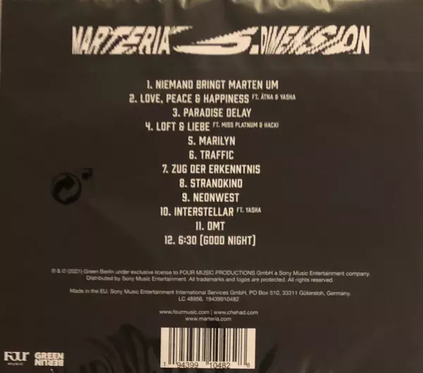 Marteria: 5. Dimension Wersja na CD w standardowe wydanie. Ta konkretna edycja została wydana w Niemcy w wydawnictwie Green Berlin dnia 22. października 2021. Album można sklasyfikować jako gatunek Hip Hop.