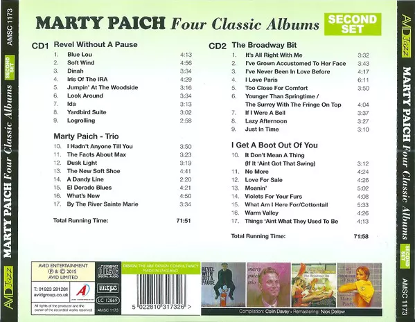 Marty Paich: Four Classic Albums (Second Set) Wersja na 2CD w zremasterowane wydanie. Ta konkretna edycja została wydana w WIELKA BRYTANIA w wydawnictwie Avid Jazz we współpracy z Avid Entertainment dnia 20. października 2015. Album sięga do gatunku Jazz i CoolJazz.