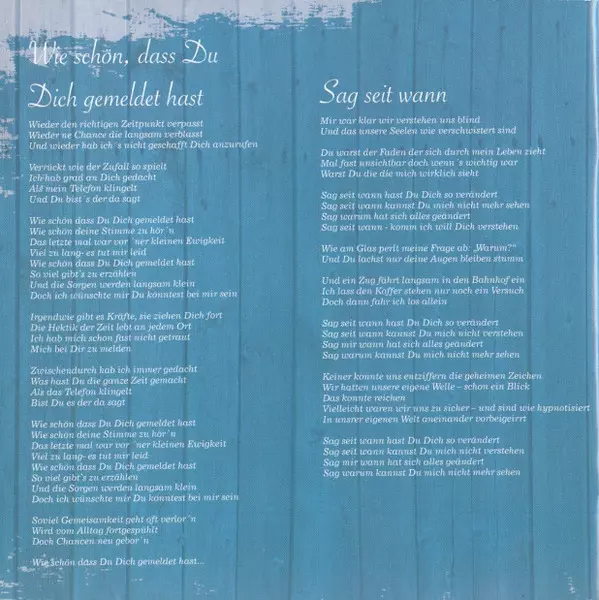 Backing Vocals Heiko Schneider (3), Markus Metz, Sabine Heil | Lyrics By Frank Ramond | Lyrics By [Special German] Luca Kaufmann | Music By Frank Ramond, Senait G. Mehari | Piano Udo Krüger | Producer Johannes Lowien