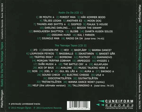 Mats/Morgan: Radio Da Da / The Teenage Tapes Wersja na 2CD w zremasterowane wydanie. Ta konkretna edycja została wydana w USA w wydawnictwie Cuneiform Records dnia 21. maja 2013. Album sięga do gatunku Rock, Jazz, Rock progresywny i Fusion.