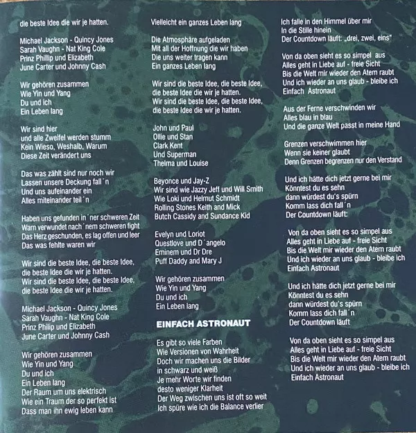 Bass Sebastian Gieck | Drums Sam Dick | Featuring Moop Mama | Horns Moop Mama | Lyrics By Keno Langbein, Nico Suave | Mastered By Ludwig Maier | Mixed By Jiang Ningyuan, Sam Dick | Music By Danny Samar, Maik Schott (2), Memru Renjaan, Tobias Held | Music By, Lyrics By Anna Guder, Max Mutzke | Piano Jiang Ningyuan | Producer, Recorded By, Mixed By Sain (6) | Rap Keno Langbein