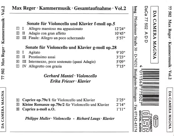 | Wykonawca | Max Reger | Gerhard Mantel | Erika Frieser | Philippe Muller | Richard Laugs |