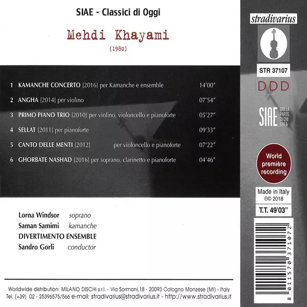 | Wykonawca | Sandro Gorli | Divertimento Ensemble | Lorna Windsor | Mehdi Khayami | سامان صمیمی |